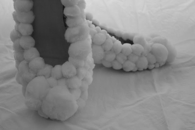 small decorative pom-pons may be attached to clothing......or in this case shoes.